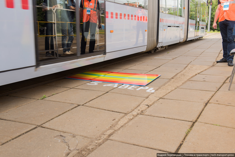 Первый из них — стоп-линия. Водитель трамвая должен остановить вагон (скорость произвольная, на выбор участника) передней крайней точкой в пределах 60-сантиметровой зоны. Максимальные очки участник получает при остановке в центре зоны +/- 10 см